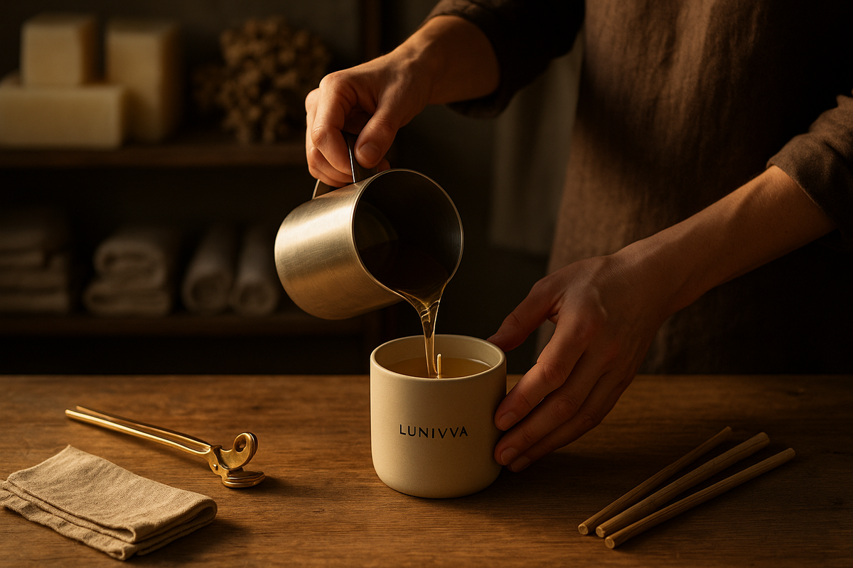 Golden warmth and herbal depth weave into a cocoon of calm. This duo whispers: stay, breathe, rest — you are exactly where you should be. Quiet luxury, captured in flame.
