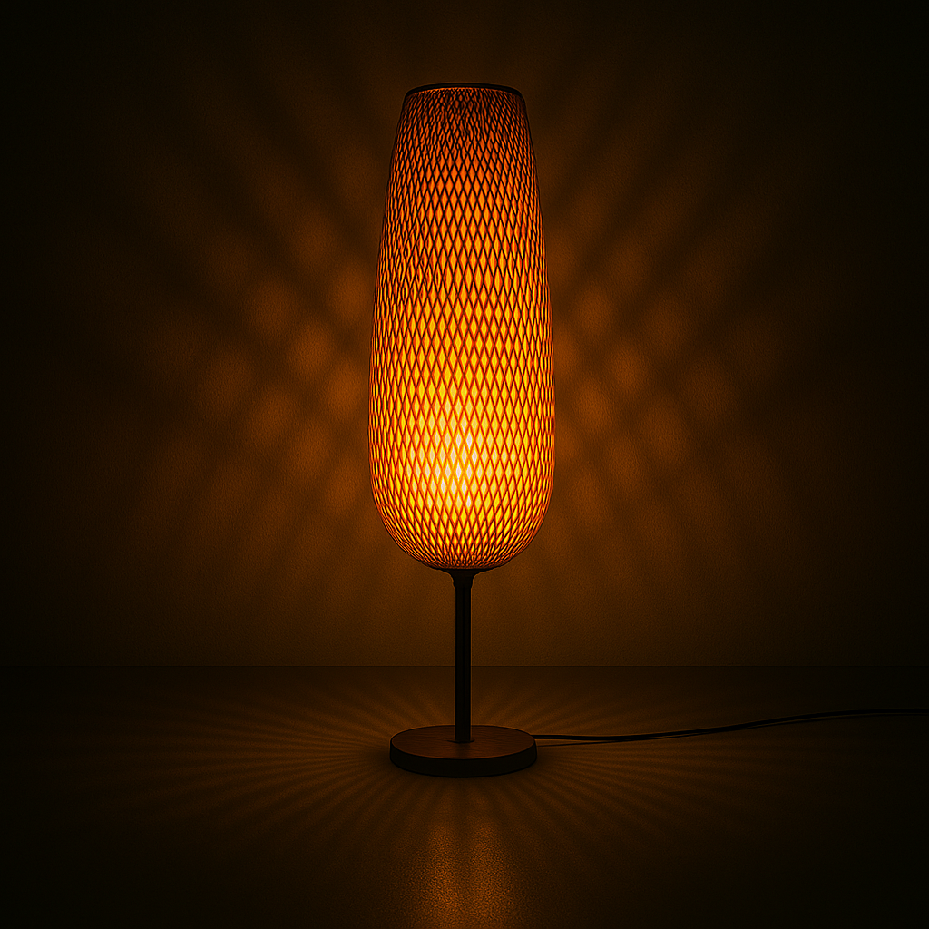 Handwoven from natural bamboo, the Ori Bamboo Lamp is a celebration of light and craft. Each piece is shaped by artisans, allowing warm light to pass through its woven form and paint soft patterns across the room.