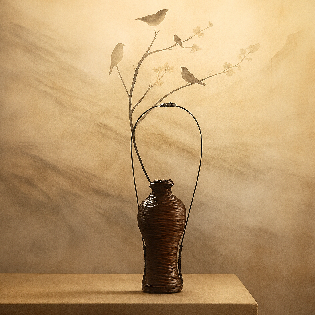 Handcrafted from aged bamboo, the Sakura Obsidian Vase embodies the harmony of delicacy and strength. Its deep, dark patina recalls the richness of obsidian stone, while the name Sakura honors the timeless elegance of cherry blossoms.